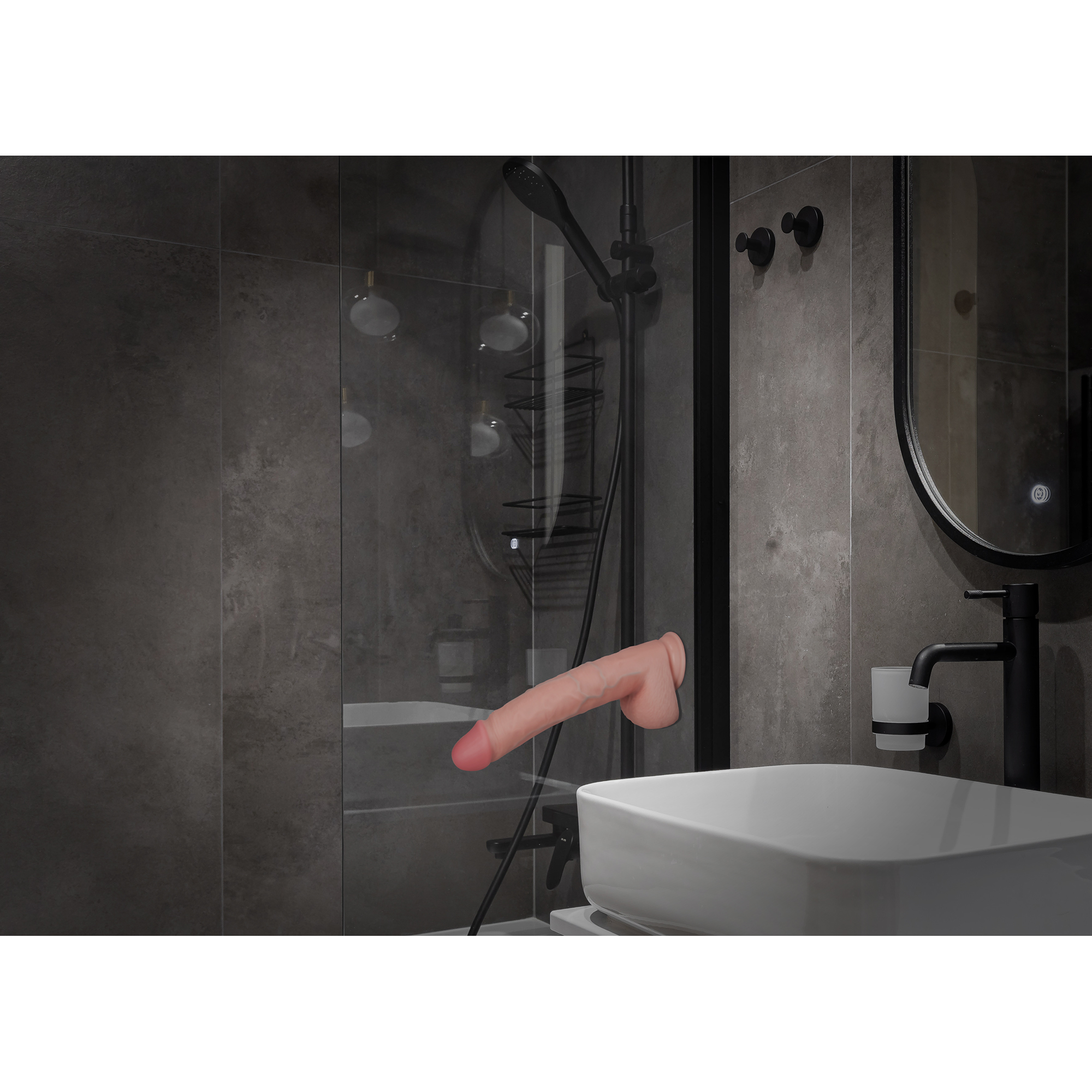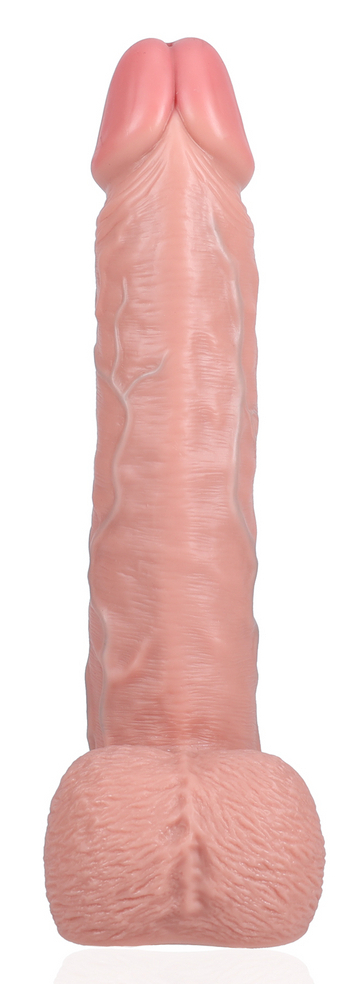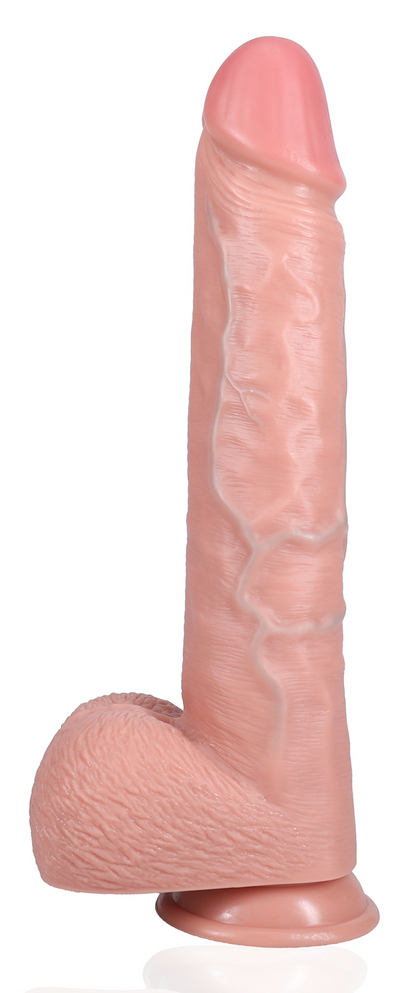 Gode avec gland décalotté et surface veinée Base ventouse Longueur insérable de 29 cm et largeur maximale de 7 cm. Poids de 2 kg En PVC