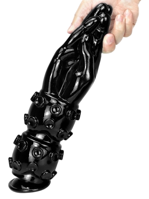 Le gode Fisting Beads est un sextoy composé d’une longueur insérable de 29 cm et d’une largeur maximale de 7 cm.Sa forme est réalisée d’une partie haute avec une main et une largeur de 2.7 à 6.2 cm. La partie basse a 2 boules et une surface texturée avec des sortes de ventouses. Avec une ventouse. En PVC