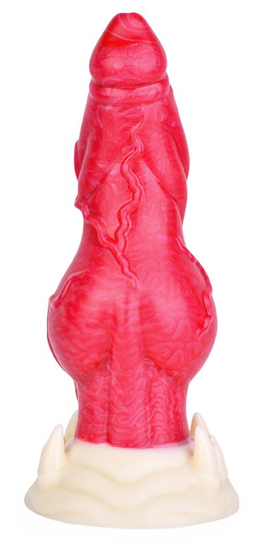 Gode rouge à la forme originale, avec une base ventouse. Longueur insérable de 16 cm et largeur de 2.5 à 6 cm. En silicone.