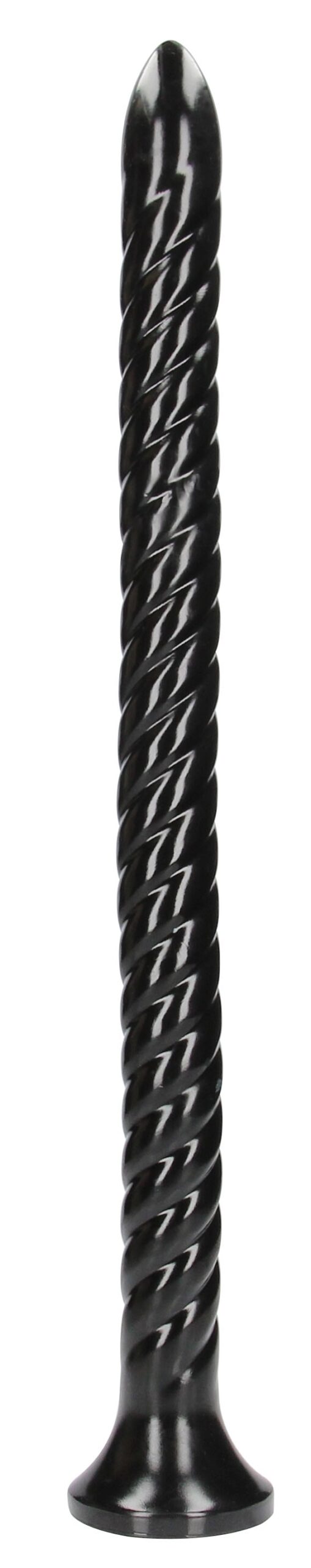 Gode long avec une surface torsadée.Longueur de 50 cm. Largeur de 3.7 cm. Structure souple et base ventouse. En PVC
