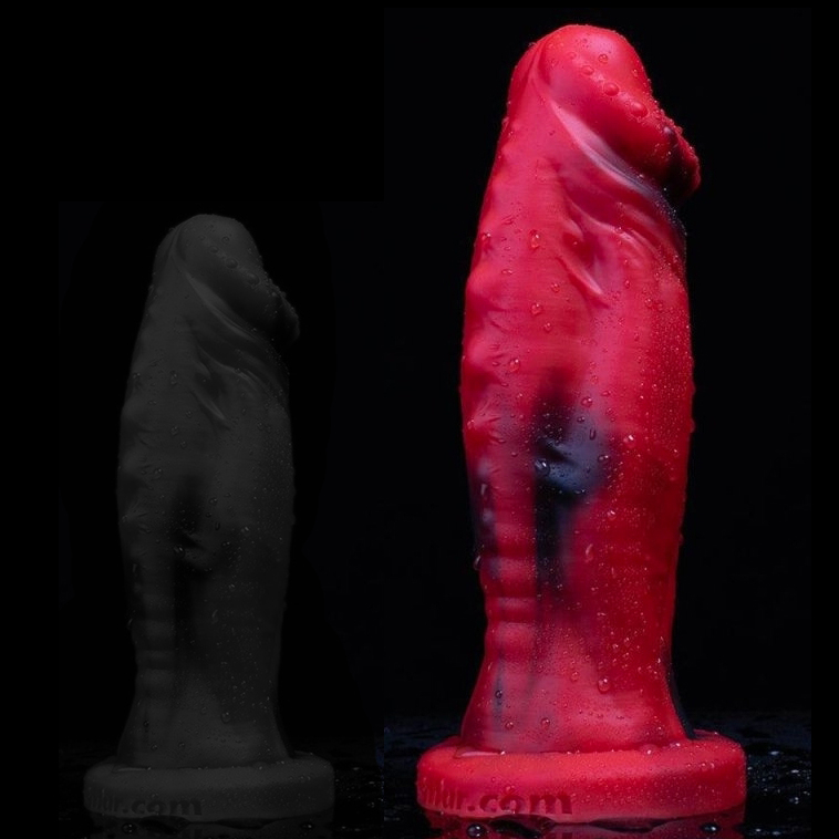 Gode rouge avec une longueur insérable de 25 cm et une largeur allant de 7 à 9 cm.Surface texturée.Avec une base ventouse et une conception en silicone.