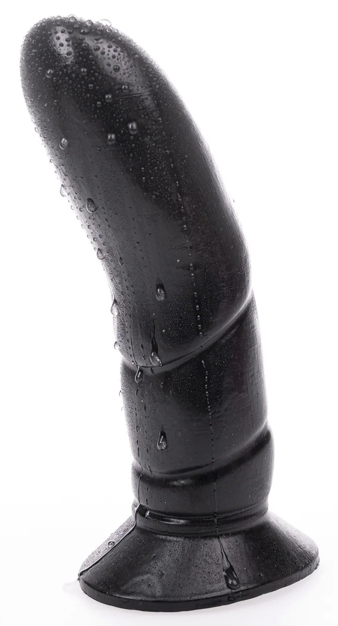 Gode avec une forme courbée et une longueur insérable de 19 cm.La largeur va de 6 à 5 cm.Attention : la forme est aplatie. Avec la base ventouse amovible Hung System. En PVC sans phtalates.
