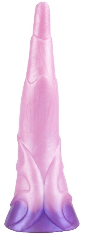 Le gode Pinky Eleph est rose et violet avec une forme originale. Il a une forme courbée et une surface texturée.La longueur insérable est de 26 cm. La largeur va de 2 à 6 cm. Avec une ventouse. En silicone