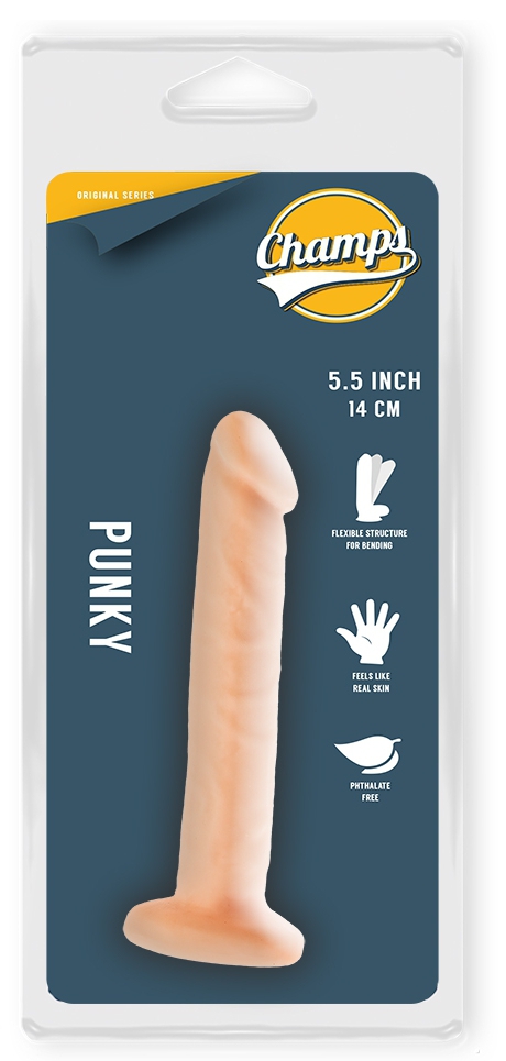 Le gode Punky Champs est un sextoy conçu avec une forme droite et efficace pour procurer des sensations intenses.Il se compose d’une longueur insérable de 12cm et d’une largeur de 2.5cm. Avec une base ventouse et une structure souple.Fabriqué en PVC