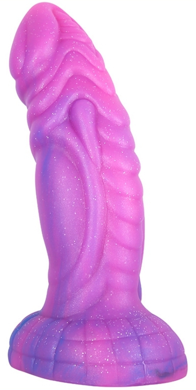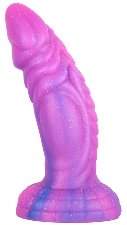 Ce gode violet est un sextoy en silicone composé d’une forme originale et fantaisiste.Il se compose d’une forme courbée de 18cm de longueur insérable. La largeur minimale est de 2.5cm. La largeur maximale est de 5.5cm. Avec une surface texturée. Avec une ventouse