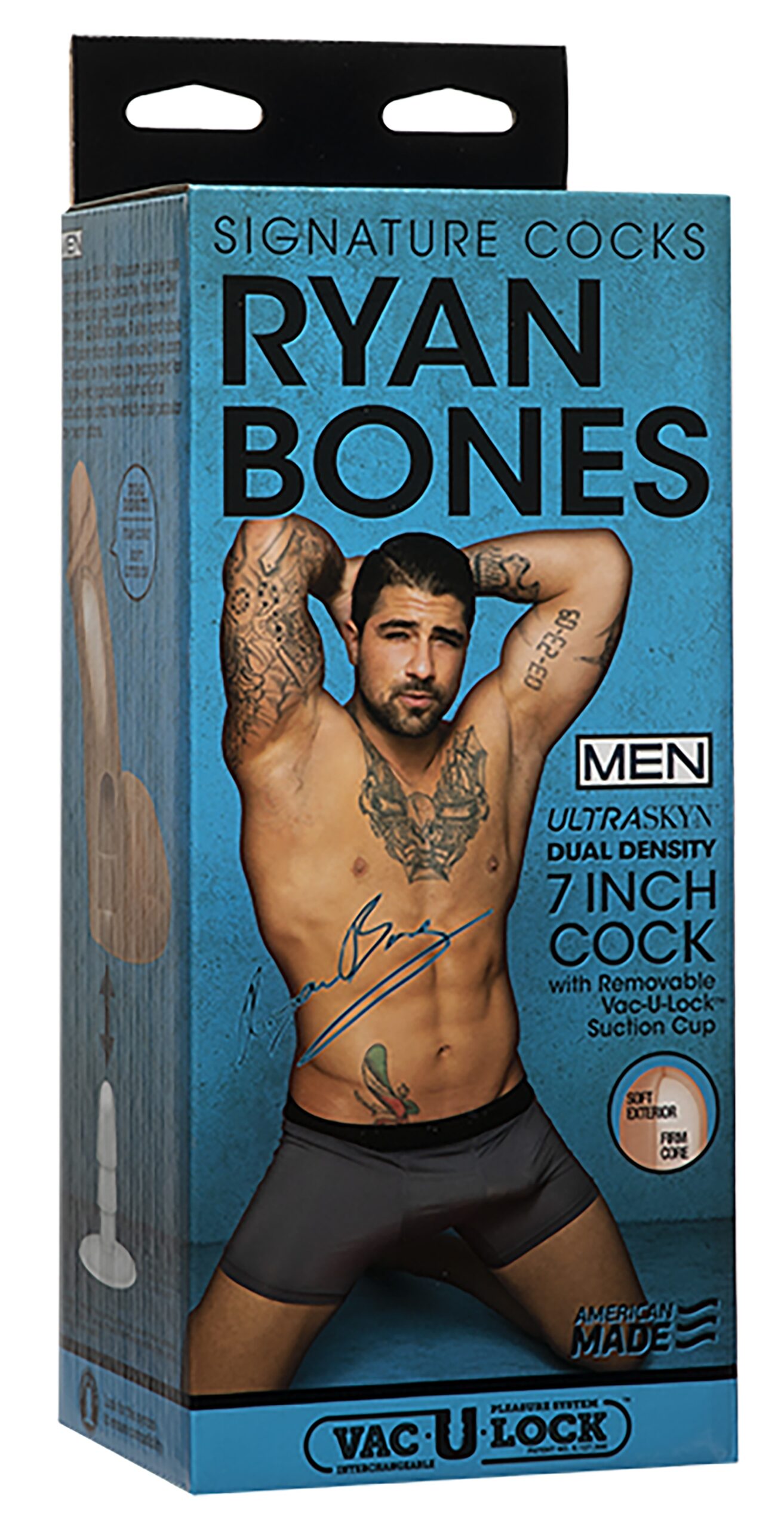 Ce gode est conçu avec une forme représentant le pénis de l’acteur Ryan Bones. Il possède une finition parfaite et des détails réalistes permettant d’obtenir des sensations intenses et excitantes.Il se compose d’une longueur insérable de 14cm avec une largeur de 5cm.La structure est à la fois souple et ferme pour encore plus de réalisme. Fabriqué en TPE.Avec le support Ventouse Vac-U-Lock