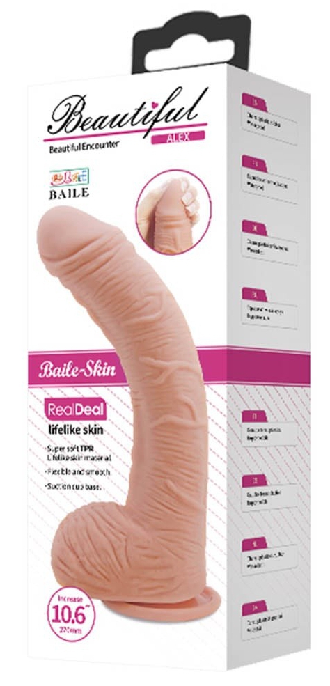 Le gode réaliste Alex de la gamme Beautiful est un sextoy conçu avec une forme courbée et une surface veinée. Il apporte des sensations plaisantes au fur et à mesure de l’insertion.La longueur insérable est de 22cm. La largeur est de 5cm. Avec une ventouse. Il est fabriqué avec une structure souple et une matière TPR douce et imitant la peau