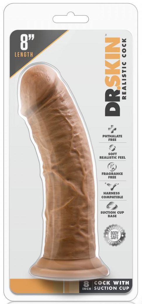 Ce gode Dr Skin est composé d’une forme courbée et épaisse.Il apporte des sensations incroyables au fur et à mesure de l’insertion grâce à une longueur insérable de 18cm. La largeur est de 5cm.Avec une surface veinée. Il possède une ventouse. Fabriqué en PVC
