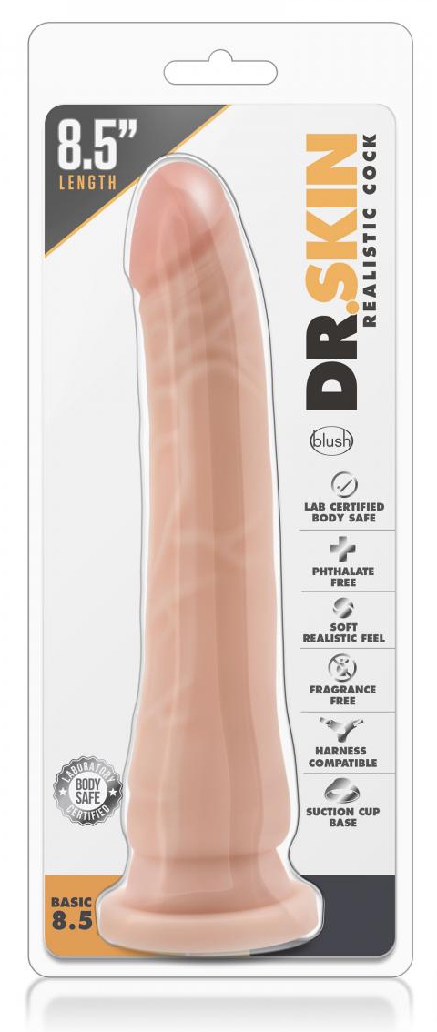 Ce dildo Realistic Dr Skin est un sextoy droit de 20cm de long insérable. Il est composé d’un relief veiné qui apporte des sensations intenses. La largeur est de 4cm au maximum (début à 3cm sur le gland).Il est fabriqué en PVC couleur chair. La présence e la ventouse permet de jouer plus facilement et de le positionner sur un harnais gode ceinture