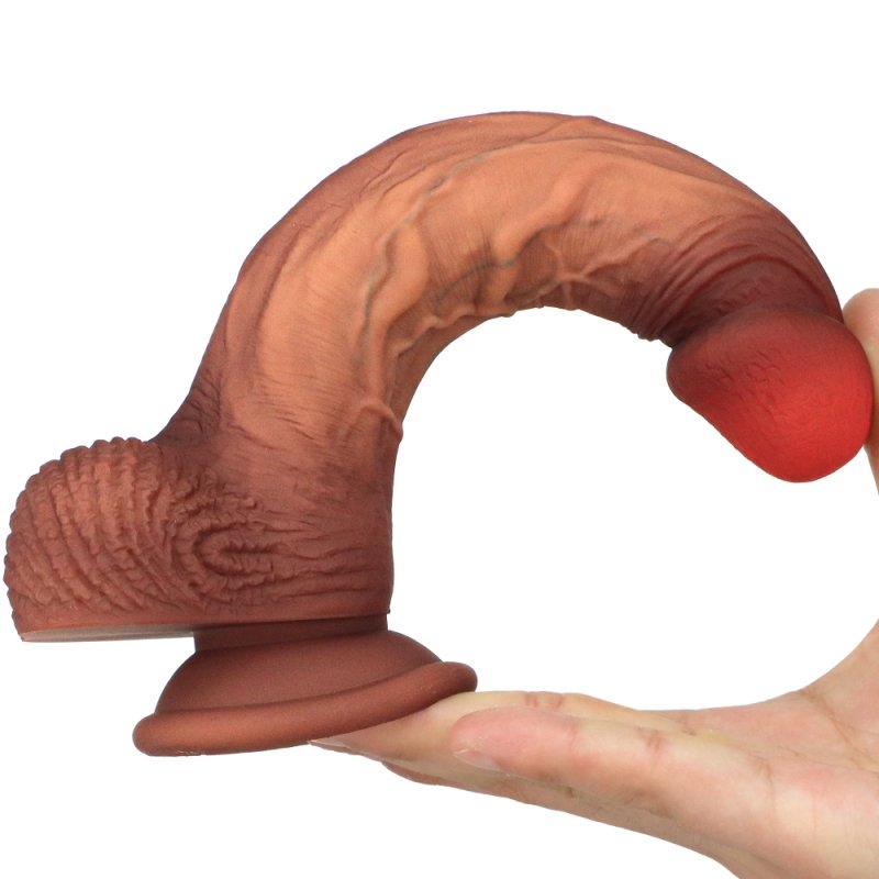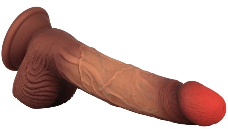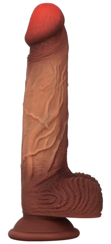 Gode avec base ventouse Gland décalotté et bourses rondes Longueur de 16 cm. Largeur de 3.8 cm. Silicone