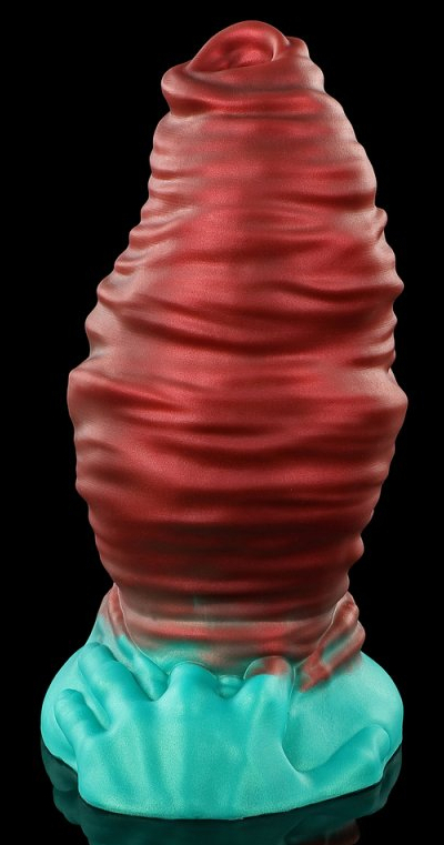 Gode, à la forme atypique, avec relief irrégulier.Longueur insérable de 9 cm et largeur de 3 à 4.5 cm.En silicone, avec base ventouse.