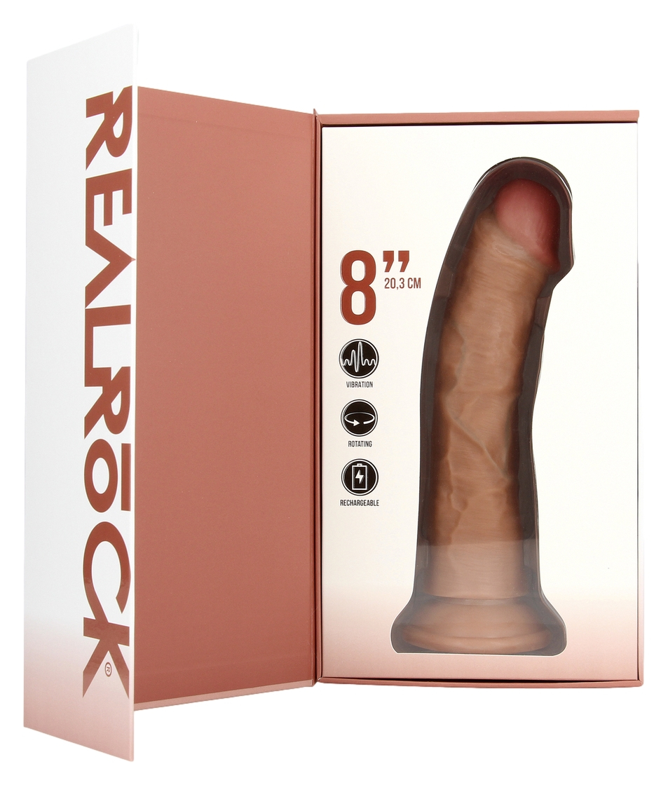 Forme réaliste et courbée avec une longueur insérable de 20 cm.Largeur de 4.6 cm.La surface est veinée.Avec 10 modes de rotation et vibrations simultanés. PVC.Recharge USB.