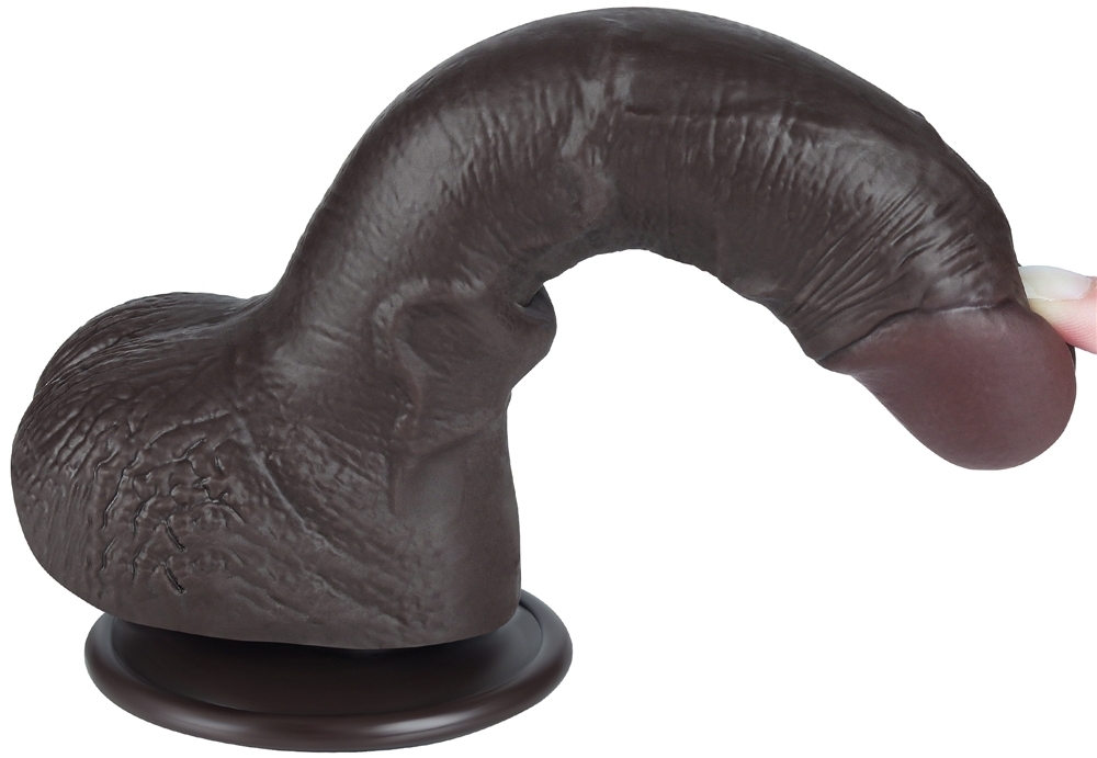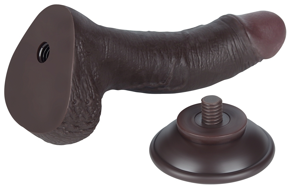 Gode réaliste avec une couleur noir imitant une peau de pénis.La surface se plisse pour un réalisme inégalé. Longueur insérable de 14 cm. Largeur de 3.5 cm.Avec une base ventouse amovible. En TPE avec une structure double densité : ferme à l’intérieur et souple à l’extérieur.