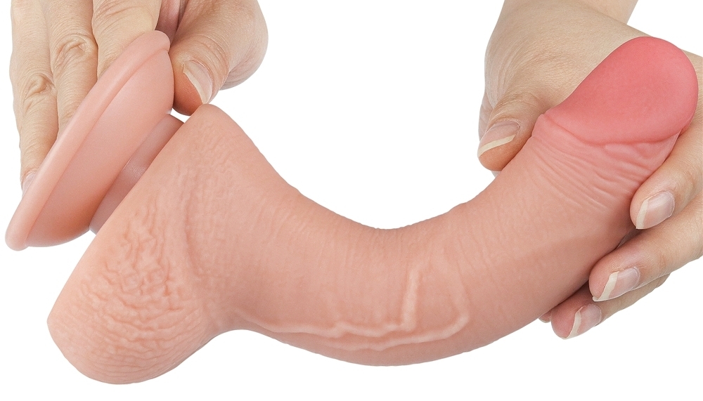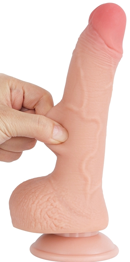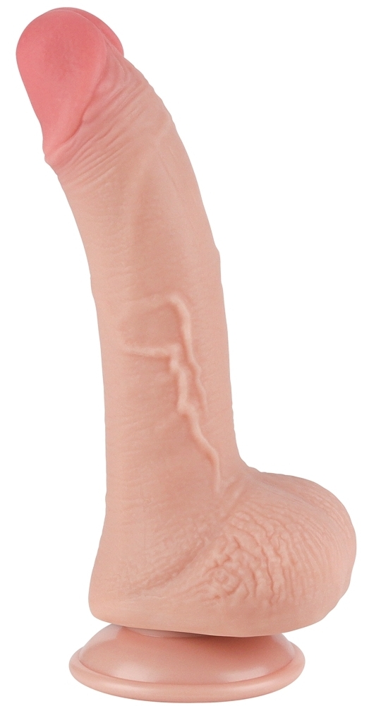 Gode réaliste avec une structure souple et une surface douce. Celle-ci imite la peau du pénis avec la possibilité de se plisser.Longueur insérable de 14 cm. Largeur de 3.5 cm.Avec des bourses et une base ventouse. En TPE