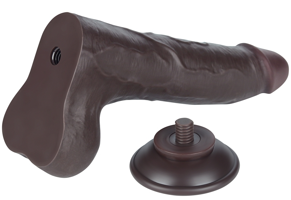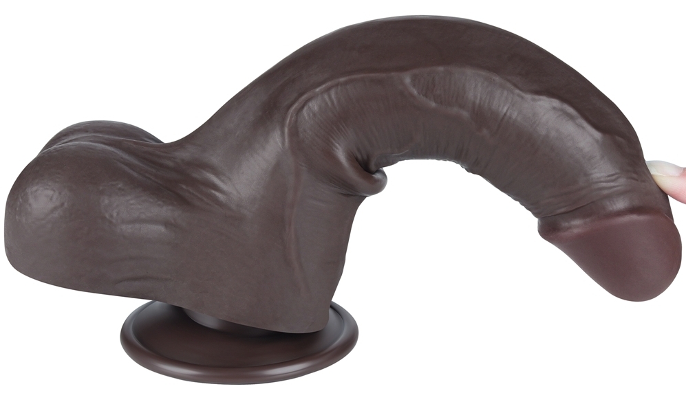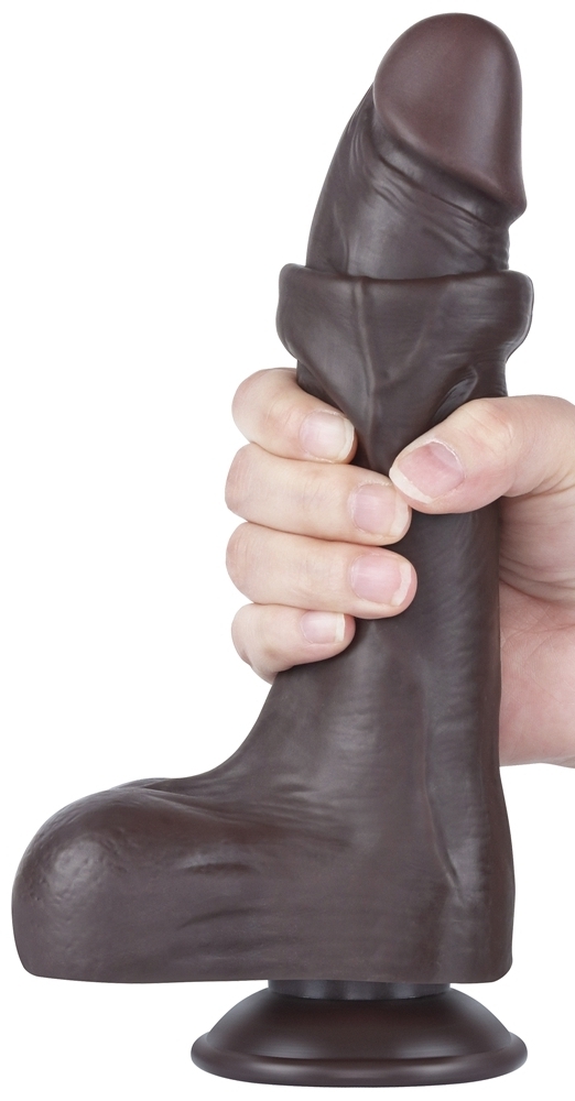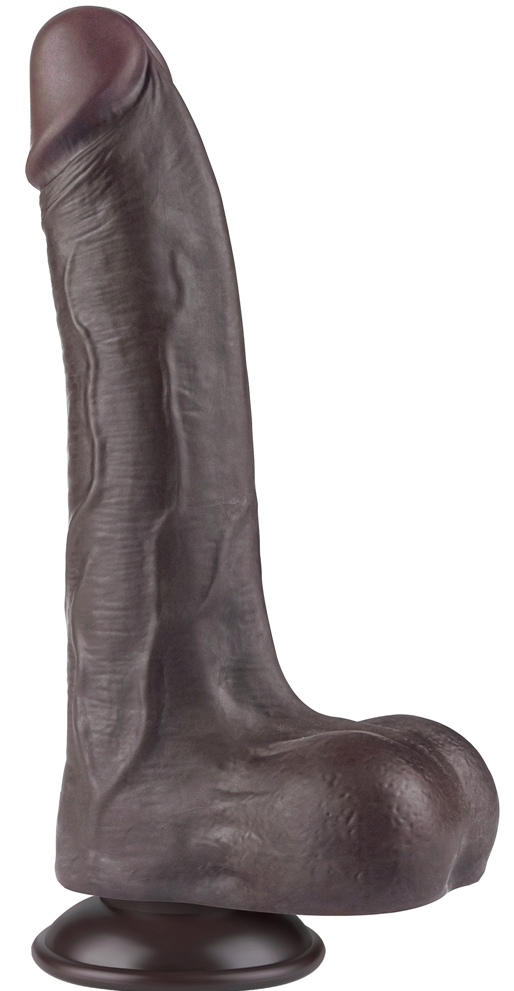 Gode de couleur noire avec une forme réaliste et une surface qui imite la peau d’un pénis.Longueur insérable de 16 cm. Largeur de 4.2 cm. Avec une base ventouse. Structure Double densité.Matière TPE