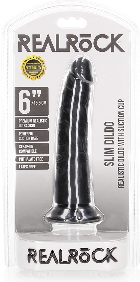 Le gode Slim Dildo de la marque RealRock est idéal pour des jeux excitants.Sa forme est réaliste et la longueur insérable est de 15.5cm. La largeur va de 2.7 à 3.8cm. Avec une base ventouse. En PVC