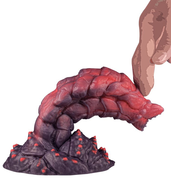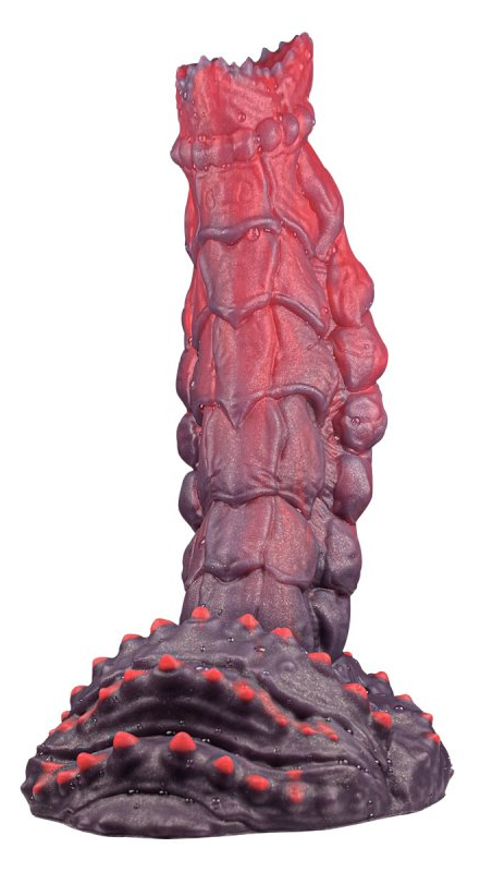 Gode à la forme atypique avec un relief varié.Longueur insérable de 17 cm et largeur de 4 cm à 6.8 cm.En silicone avec base ventouse.