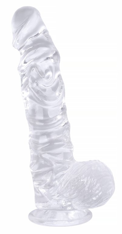 Gode transparent avec une surface fortement en relief.Longueur insérable de 17 cm. Largeur de 4 à 4.5 cm. Avec une base ventouse. En TPE.