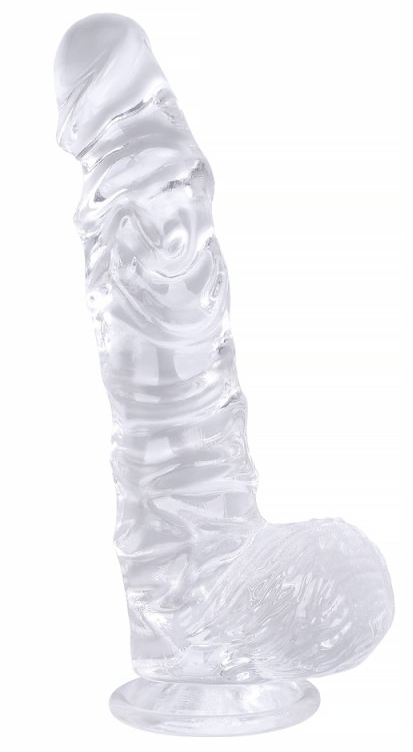 Gode transparent avec une forme originale, à la fois réaliste et très texturée.Longueur insérable de 12.5 cm. Largeur de 3 à 3.5 cm. Avec une base ventouse. En TPE