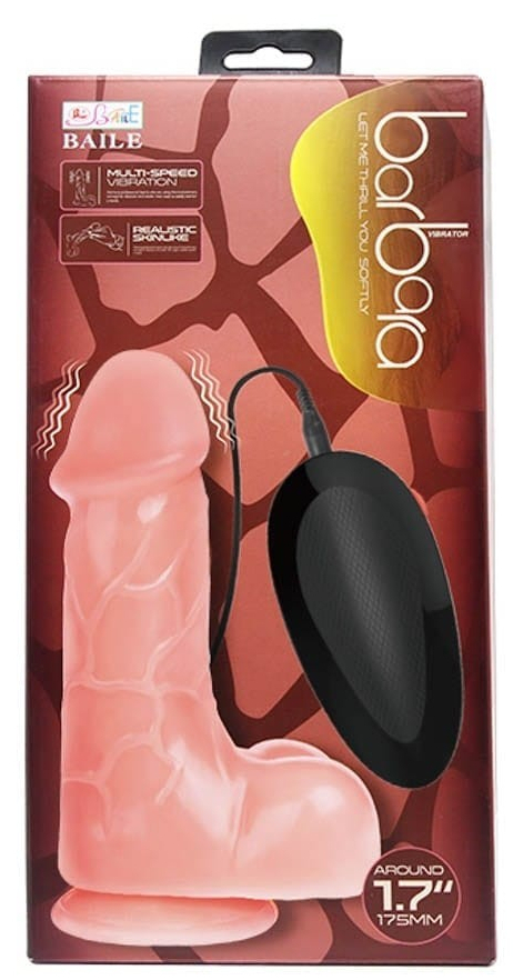 Gode vibrant avec une télécommande de contrôle. Base ventouse, gland décalotté, surface texturée et bourses rondes. Longueur insérable de 12 cm pour une largeur de 4.3 cm. En PVC