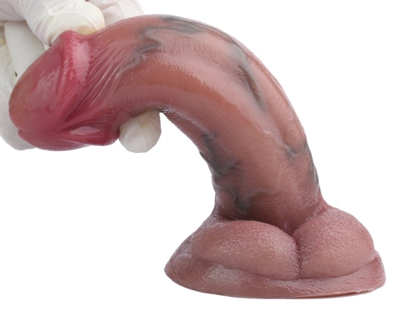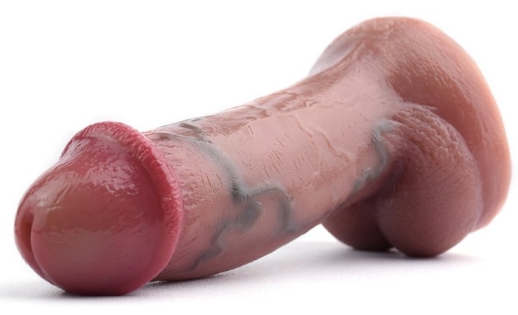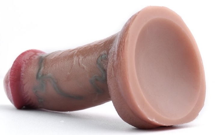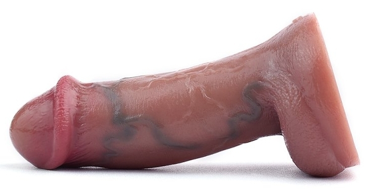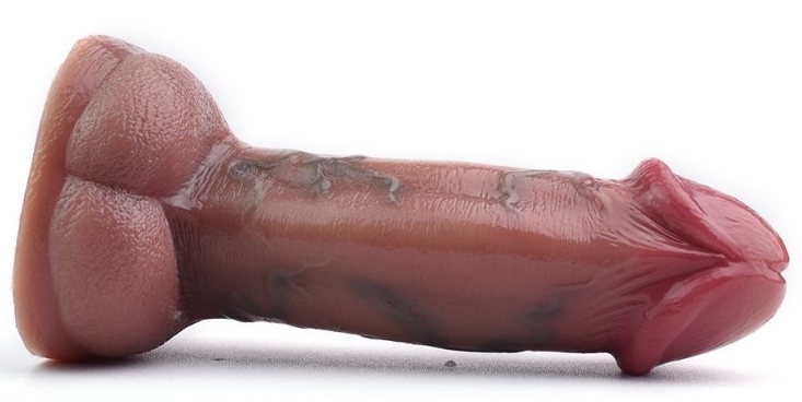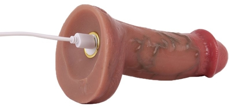 Gode vibrant avec gland large, corps veiné et bourses. 10 modes de vibrations avec télécommande fournie. Longueur insérable de 12.5 cm et largeur de 4 à 4.5 cm. En silicone marron, muni d’une base ventouse