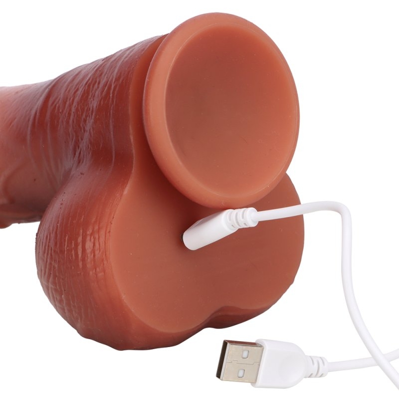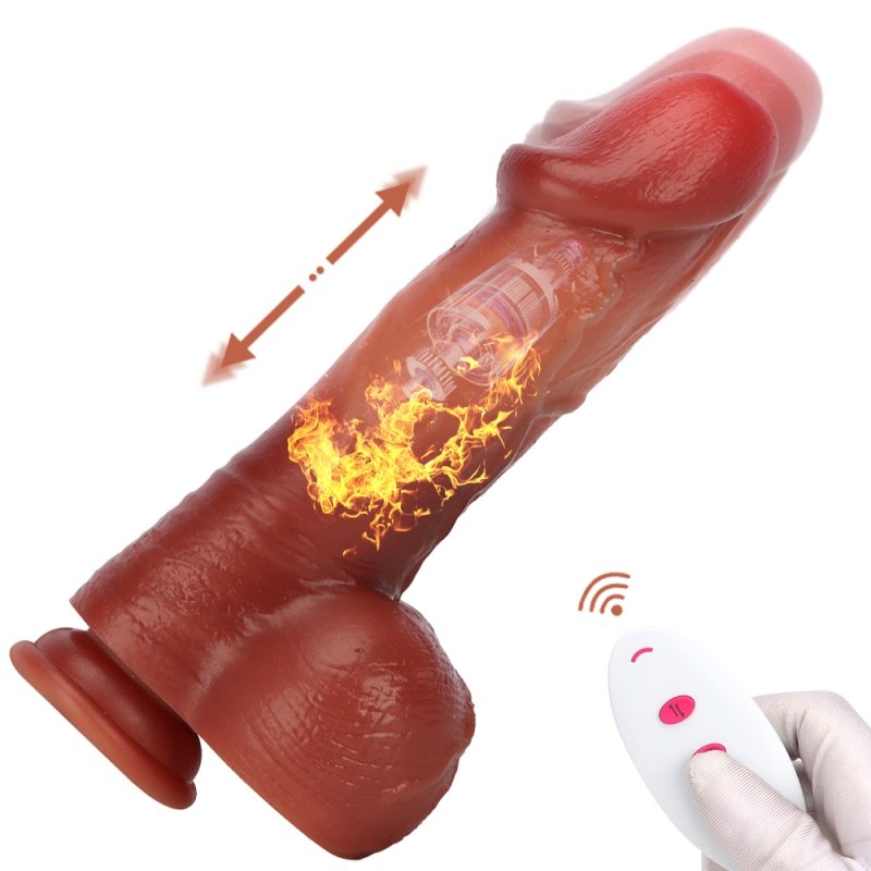 Gode vibrant avec 8 modes de vibrations et 6 rythmes de va-et-vient. Fourni avec une télécommande à piles (CR2032) Il a une fonction chauffante, avec une base ventouse. Longueur insérable de 15 cm et largeur de 3.8 à 5 cm. En silicone