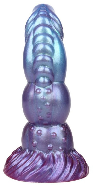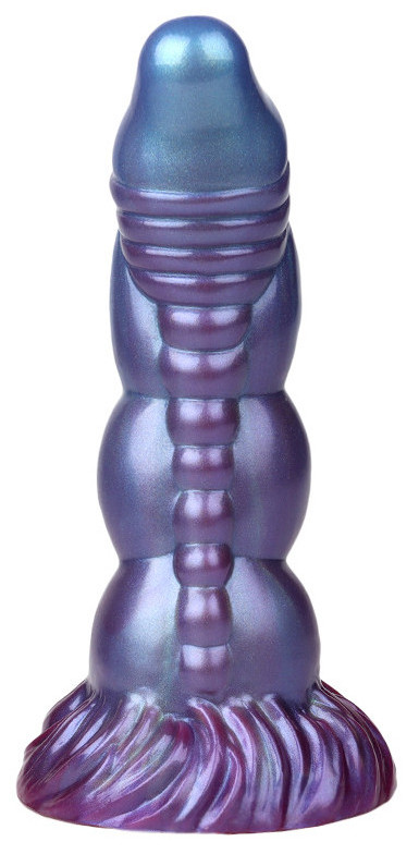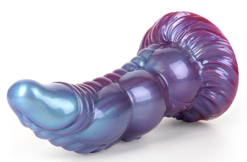 Gode, à la forme atypique, avec base ventouse.Longueur insérable de 17 cm et largeur de 4.5 à 6 cm.En silicone.