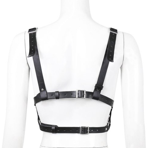 Harnais de buste, avec des chaînes métalliques argentées. Longueur ajustable sur la sangle du soutien-gorge de 67 à 92 cmLongueur ajustable sur la sangle de la taille de 61 à 87 cmEn simili noir.