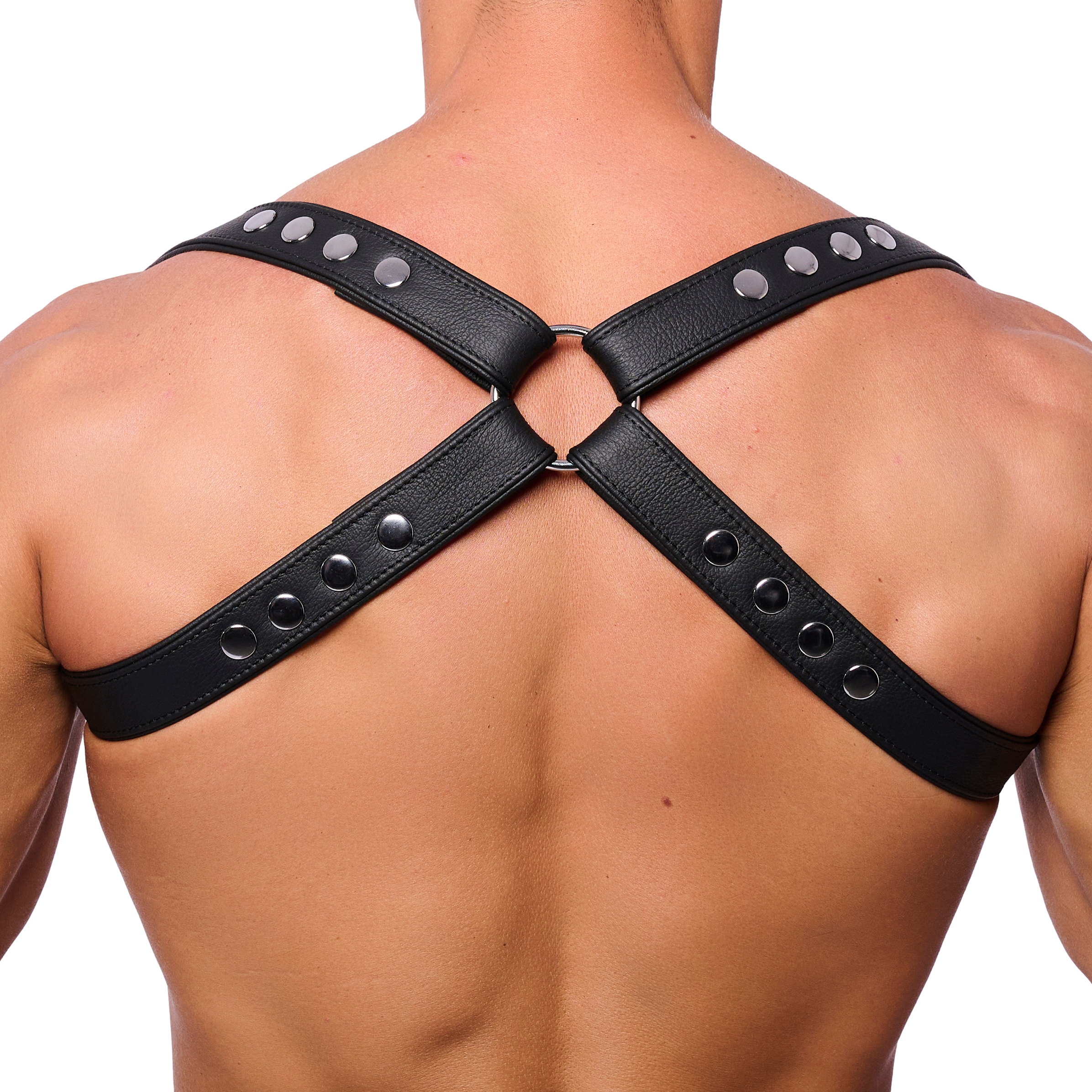 Harnais « BUTTERFLY » en cuir Noir/Noir Cuir souple, ajustable par 16 pressions FABRIQUE EN EUROPE