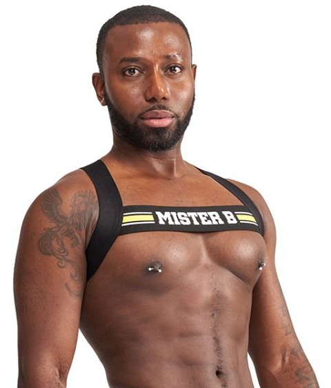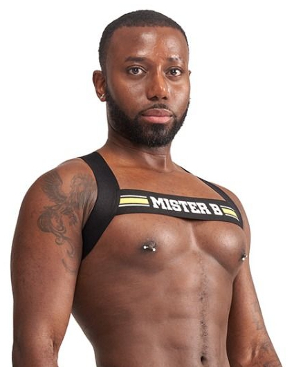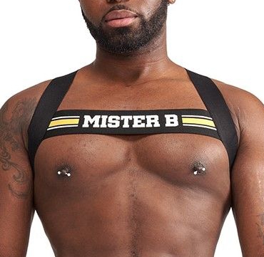 Ce harnais en élastique est un accessoire de la marque MisterB.Il est idéal pour créer une tenue fetish, notamment en soirée. Avec une forme en croix à l’arrière.Avec des lignes jaunes à l’avant venant en contraste avec le noir. Composition : 79% Polyamide, 21% Élasthanne