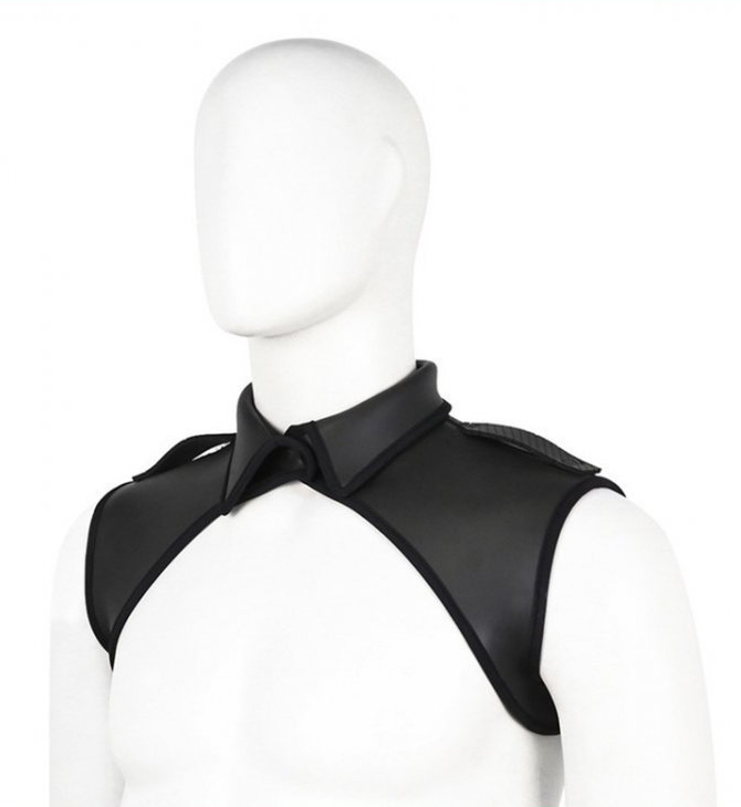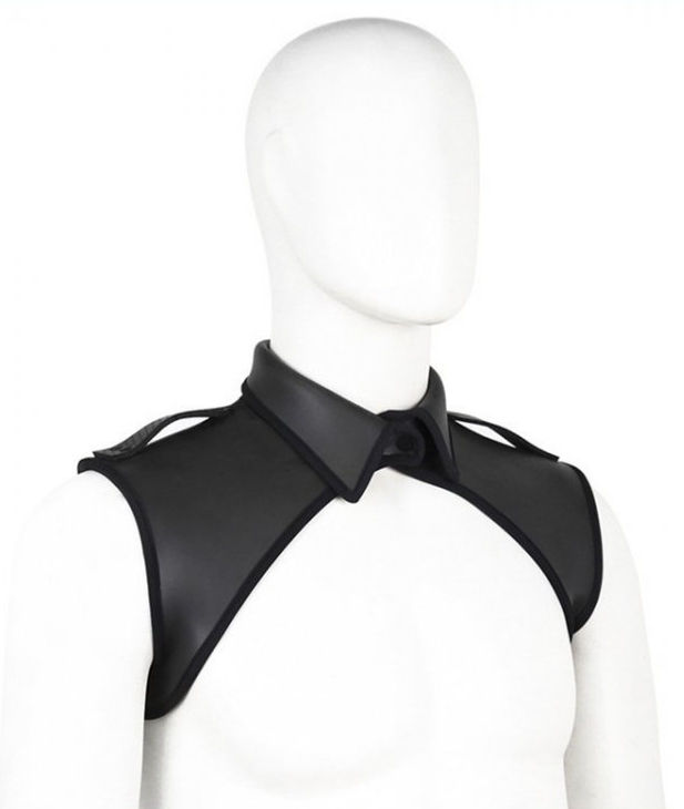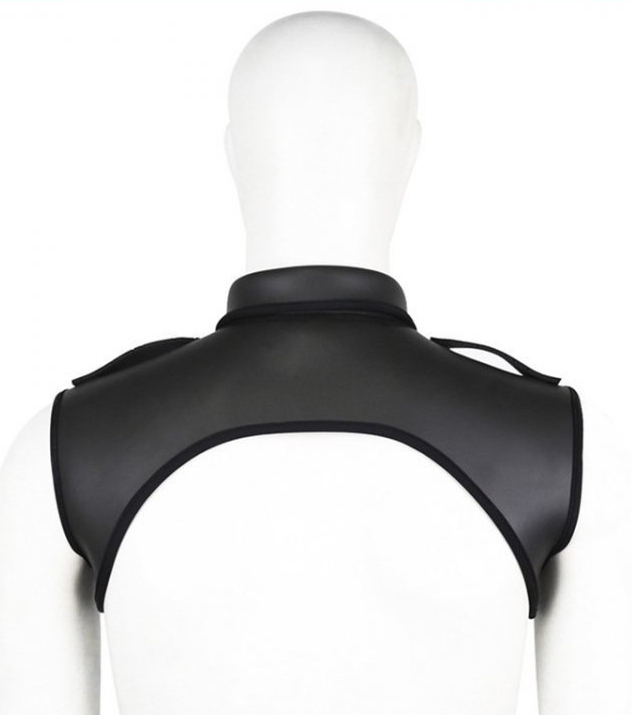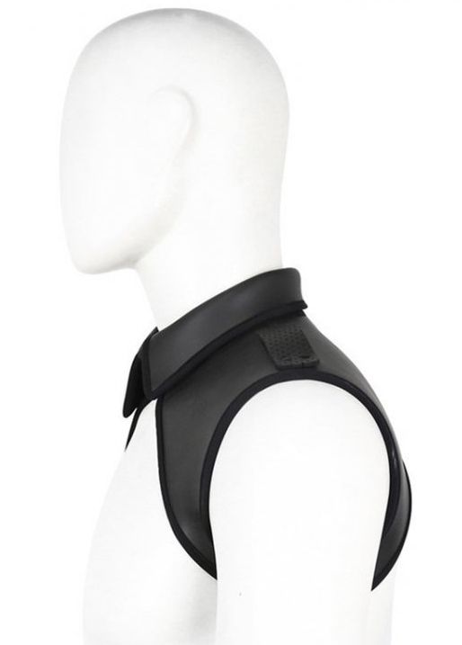 Ce harnais en simili néoprène est un accessoire idéal pour souligner le haut du buste.Il est composé d’un col et d’une forme couvrante sur les épaules. Largeur aux épaules de 41cm et hauteur de 19cm