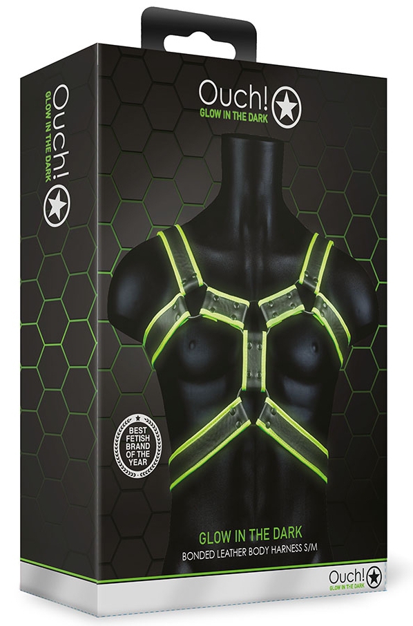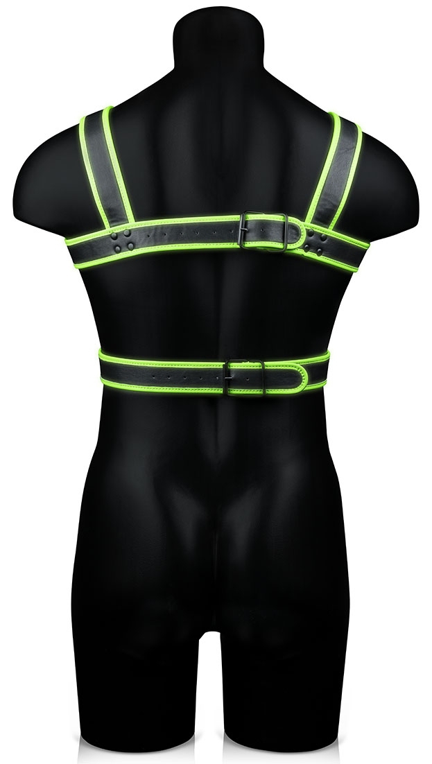 Le harnais phosphorescent Glow Body est un accessoire conçu avec des bandes ajustables de 4cm de largeur. Il est idéal pour obtenir un look sexy et excitant. Les contours verts brillent dans le noir. En matière simili (polyuréthane)
