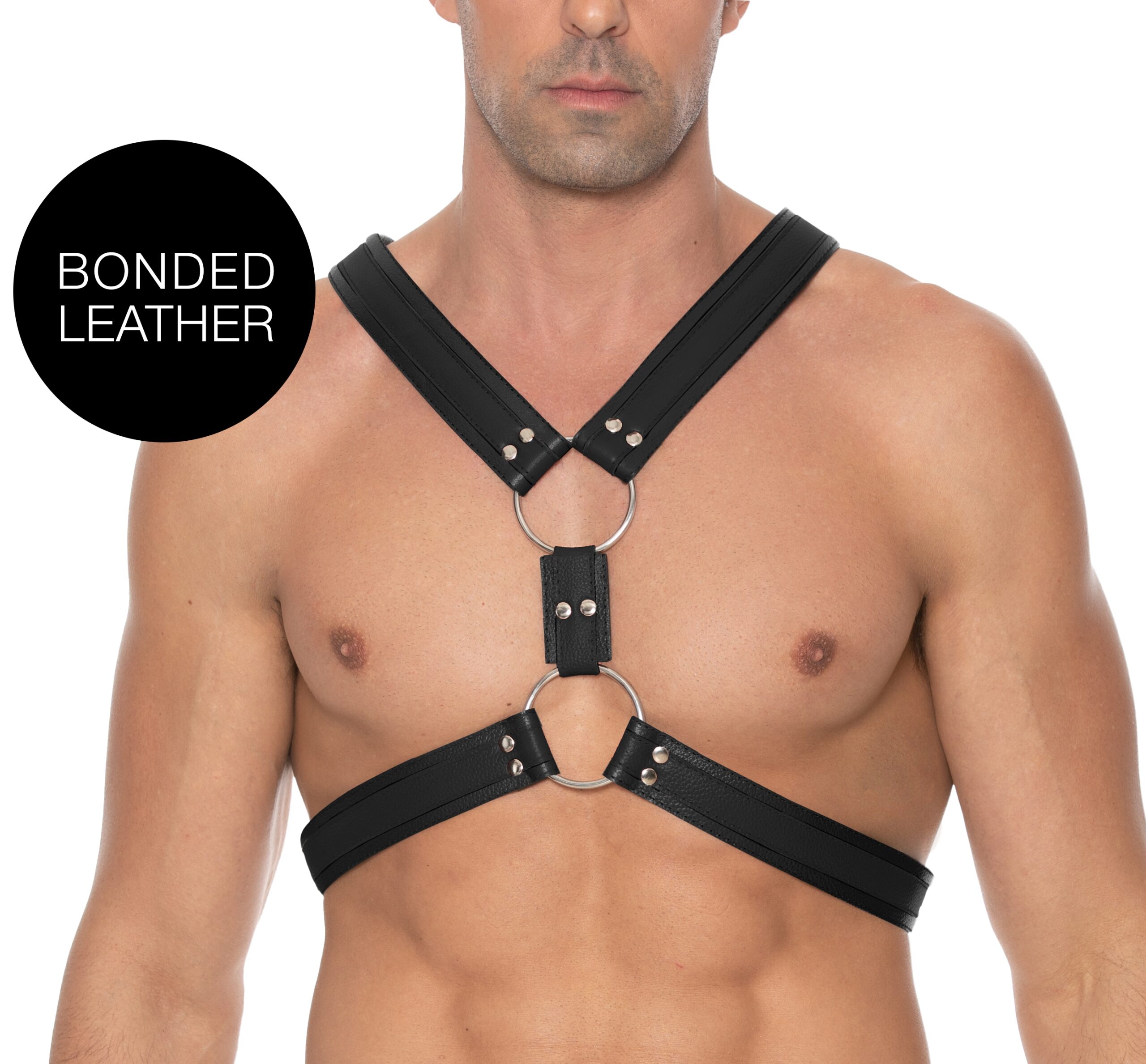Ce harnais Scottish noir est un accessoire idéal pour mettre en valeur le torse. Il se compose d’une forme originale avec une bande centrale et deux anneaux en métal.Les bandes font 3.5cm de largeur. Il s’ajuste facilement dans le dos. En cuir reconstitué (origine animale)