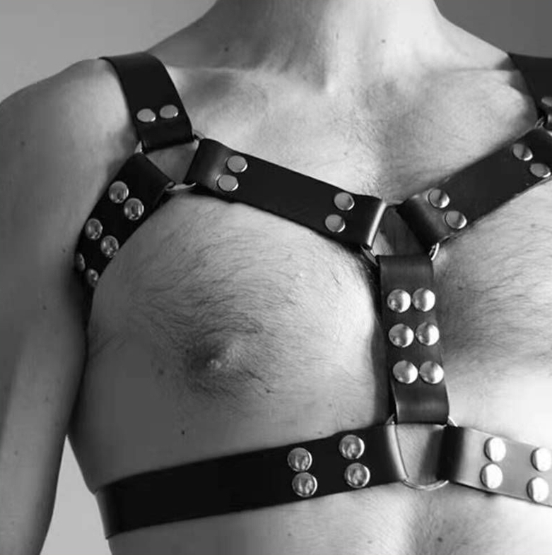 Ce harnais en simili Nail est un accessoire qui met en valeur le buste. Il est parfait pendant les moments de jeu SM.Il se compose de sangles de 3.5cm de largeur avec des rivets métalliques.Tour de poitrine d’environ 95cm. Taille unique. En simili cuir et PVC
