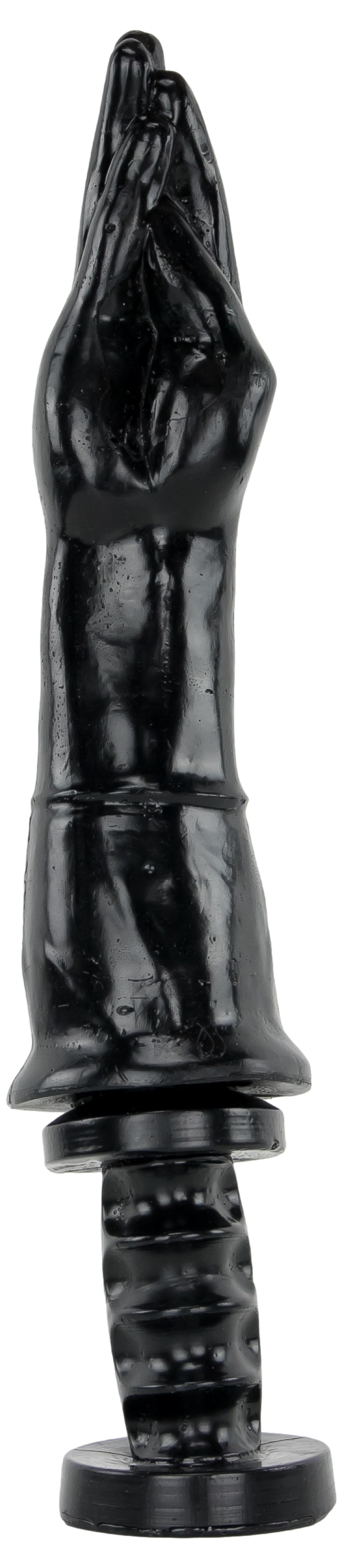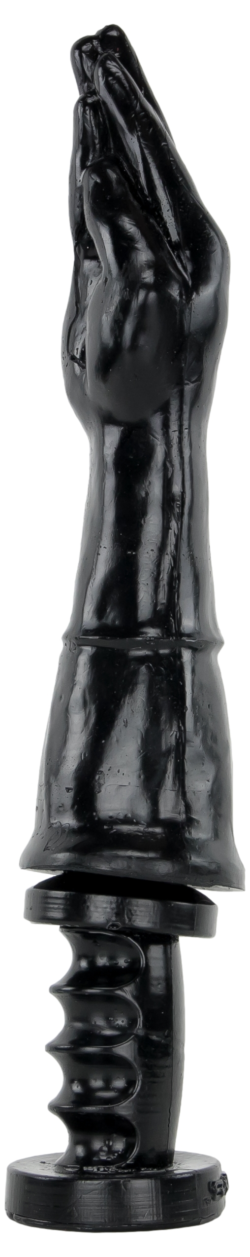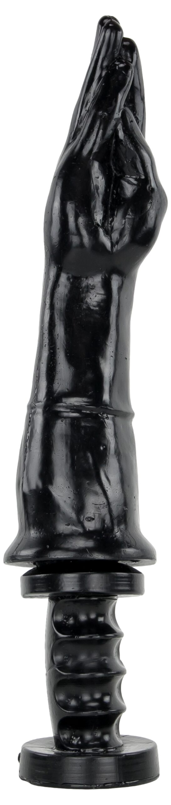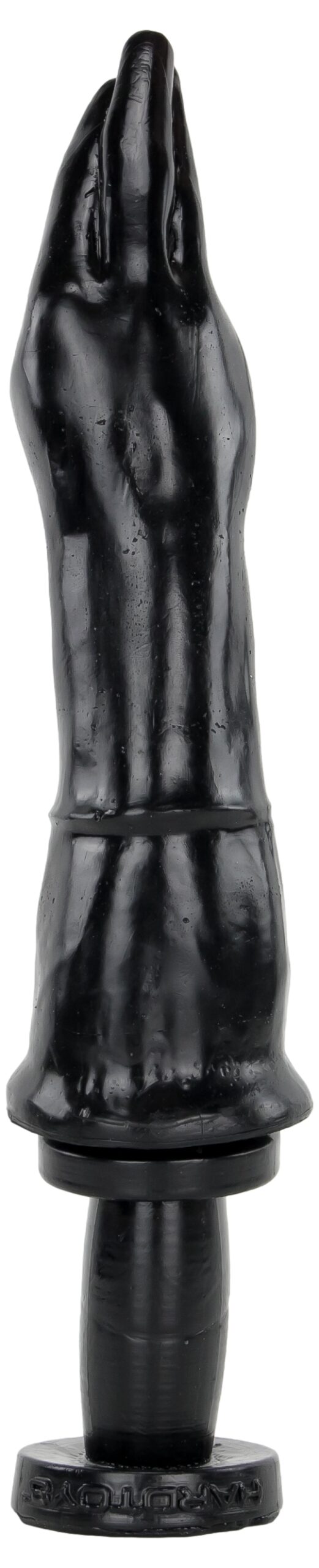 Le sextoy pour le Fist HOLD THE SLAP est un gode de la gamme FIST IMPACT. Il est composé d’une longueur insérable de 33cm. La largeur sur la main est de 8cm. Le poignet mesure 6.5cm de largeur. Il est réalisé avec une forme de bras et de main idéale pour une insertion simulant un fist-fucking.Avec une poignée. Il est fabriqué en Vinyle de qualité