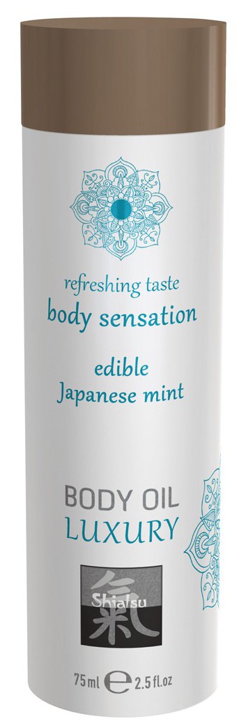 De la collection Shiatsu, cette huile de massage ici présentée est COMESTIBLE.Idéale pour faire monter l’excitation lors de vos jeux coquins, cette huile de massage offre un délicieux parfum de Menthe Japonaise qui enivrera tous vos sens.Non collante, elle est fabriquée à base d’ingrédients naturels qui lui confère une texture lisse et fluide.