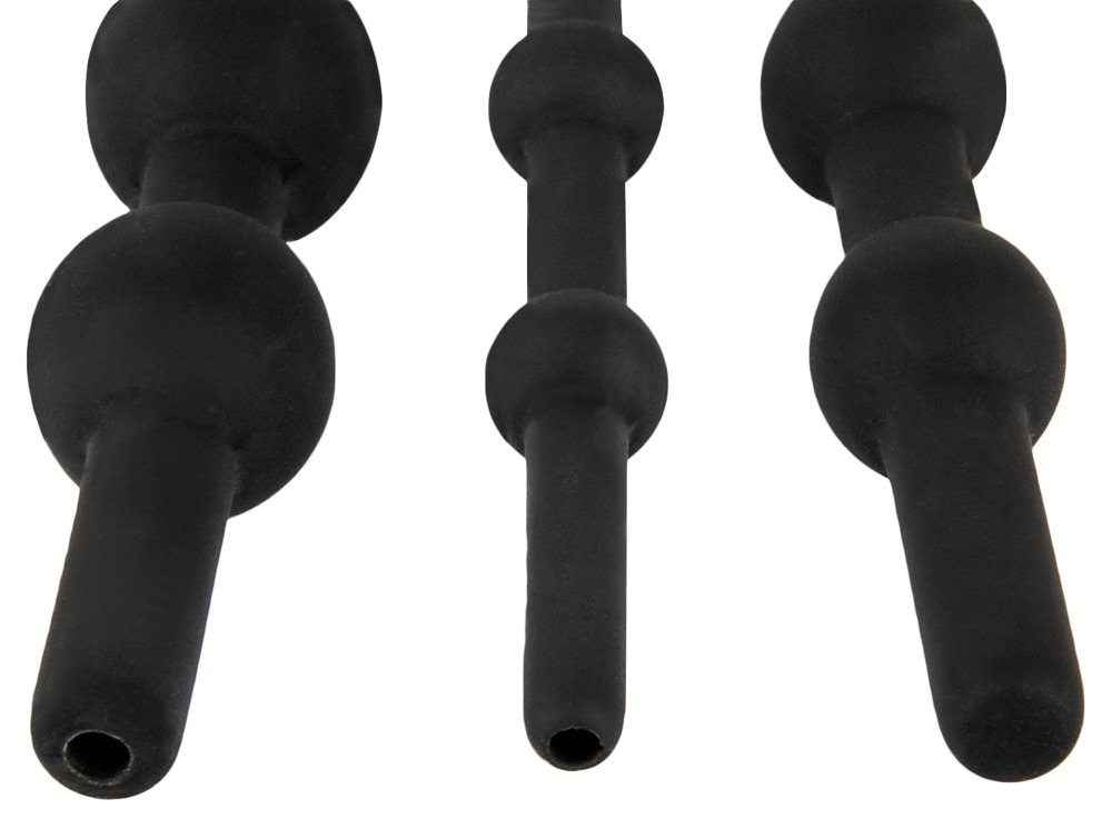 Kit composé de 3 tiges d’urètre avec une succession de boules.Avec 3 diamètres différents : 7 mm, 10 mm et 12 mm. Elles mesurent 12 cm de longueur. En matière silicone souple