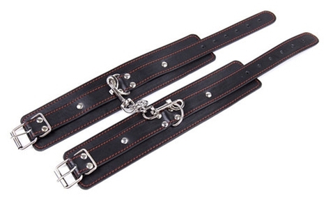 Material: Faux Leather + Metal Color: Black Package: OPP Bag Package included: 1 * Footcuffs 1 * Handcuffs 1 * Blindfold mask 1 * Ball Gag 1 * Paddle 1 * Neck collar 1 * Hogtie Kit