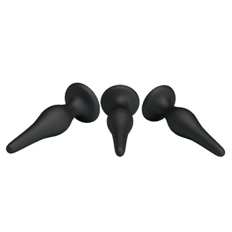Ce lot de 3 plugs en silicone est idéal pour les débutants dans le plaisir anal.Il est proposé par la marque Pretty Love, spécialiste des sextoys agréables donnant des sensations plaisantes. Ce kit est parfait pour les moments intimes. Dimensions: 7.5 x 2.3cm (longueur insérable x largeur maximale) 10 x 2.6cm 12 x 3.2cm Avec base ventouse