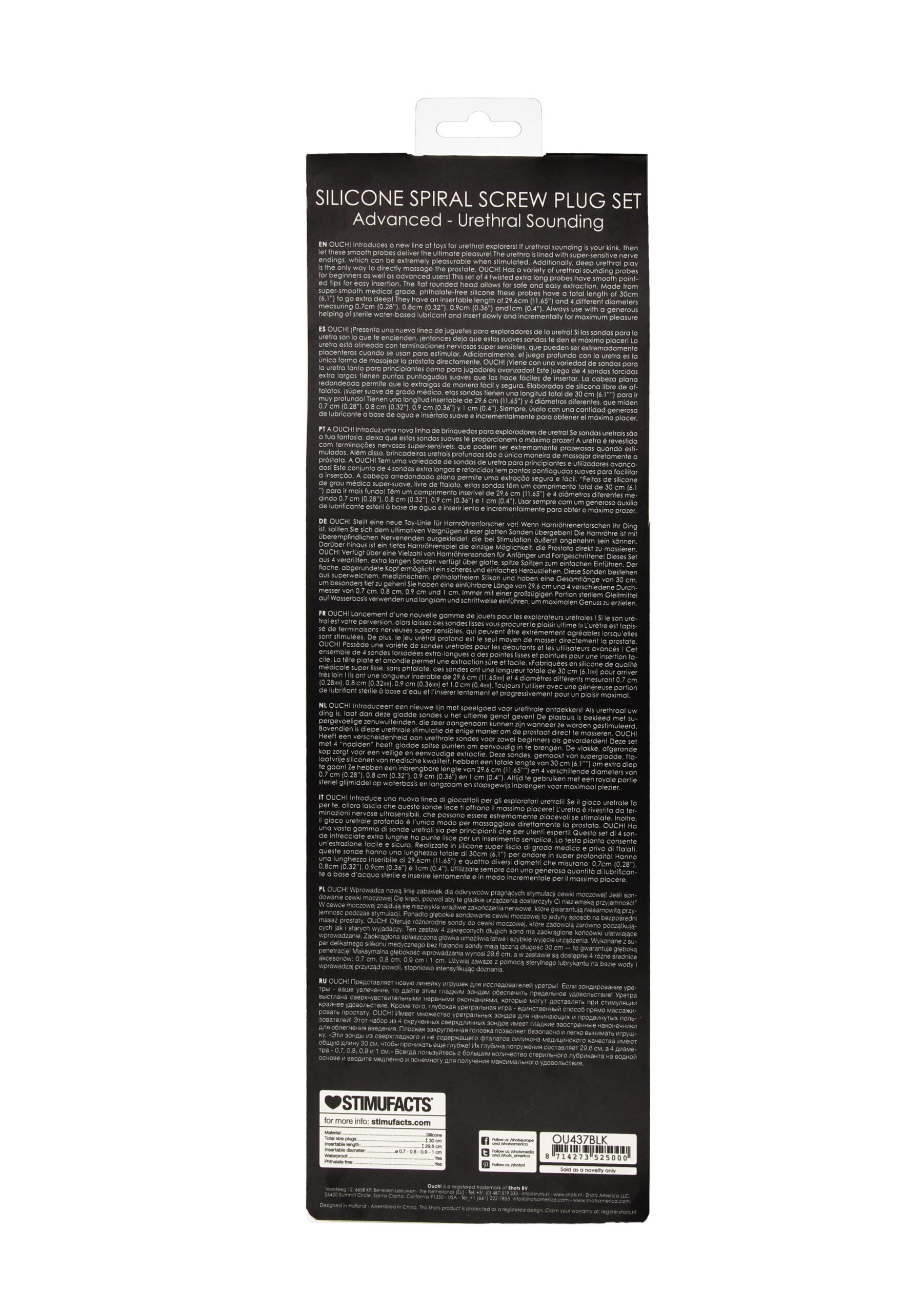 Ce lot SPIRAL CREW est composé de 4 tiges en silicone pour l’urètre. Il est idéal pour augmenter les sensations de façon progressive.Chaque tige mesure 30cm de longueur et possède un diamètre : 7mm, 8mm, 9mm ou 10mm.La structure est flexible. Fabriquées en silicone
