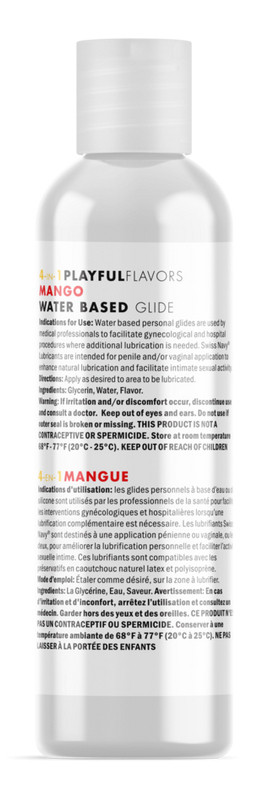 Lubrifiant à base d’eau, saveur mangue.Flacon de 29.5 ml.
