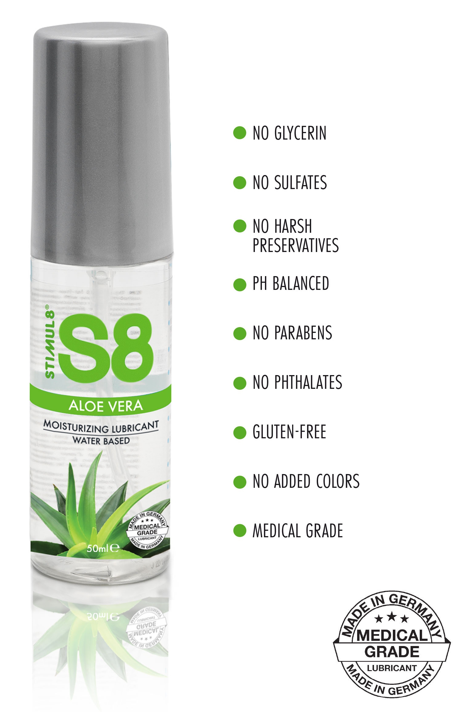 Ingrédients : AQUA (WATER), BUTYLENE GLYCOL, PROPYLENE GLYCOL, HYDROXYETHYLCELLULOSE, PANTHENOL, ALOE BARBADENSIS LEAF JUICE, LACTIC ACID, POTASSIUM SORBATE Sans parabens, sulfates, phtalates ou colorants. Élaboré en Allemagne. Précautions d’utilisation: Conserver dans un endroit sec et à l’abri de la lumière Garder hors de portée des enfants Eviter le contact avec les yeux, la peau abimée et les plaies. En cas d’irritations, arrêter l’usage et de consulter un médecin si cela persiste Tester sur une petite surface. En cas de rougeurs, allergies ou gênes, ne pas utiliser Ce lubrifiant n’est pas un contraceptif. Il ne contient pas de spermicide Ne pas avaler