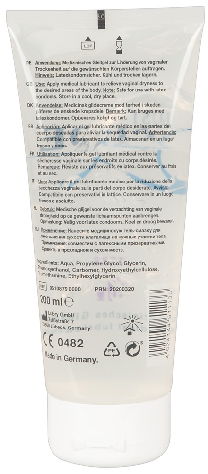Composition : Aqua, Propylene Glycol, Glycerin, Phenoxyethanol, Carbomer, Hydroxyethylcellulose, Tromethamine, Ethylhexylglycerin. Précautions d’utilisation: Conserver dans un endroit sec et à l’abri de la lumière Garder hors de portée des enfants Éviter le contact avec les yeux, la peau abimée et les plaies. En cas d’irritations, arrêter l’usage et de consulter un médecin si cela persiste Tester sur une petite surface. En cas de rougeurs, allergies ou gênes, ne pas utiliser Ce lubrifiant n’est pas un contraceptif. Il ne contient pas de spermicide Ne pas avaler