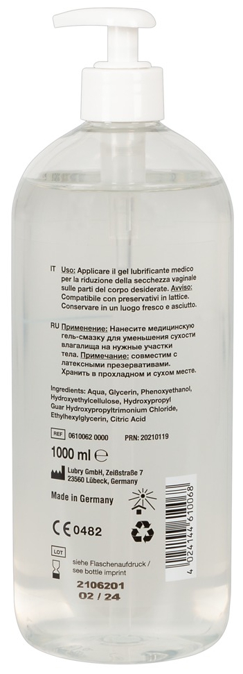 Composition : Aqua, Glycerin, Phenoxyethanol, Hydroxyethylcellulose, Hydroxypropyl Guar Hydroxypropyltrimonium Chloride, Ethylhexylglycerin, Citric Acid Précautions d’utilisation: Conserver dans un endroit sec et à l’abri de la lumière Garder hors de portée des enfants Éviter le contact avec les yeux, la peau abimée et les plaies. En cas d’irritations, arrêter l’usage et de consulter un médecin si cela persiste Tester sur une petite surface. En cas de rougeurs, allergies ou gênes, ne pas utiliser Ce lubrifiant n’est pas un contraceptif. Il ne contient pas de spermicide Ne pas avaler