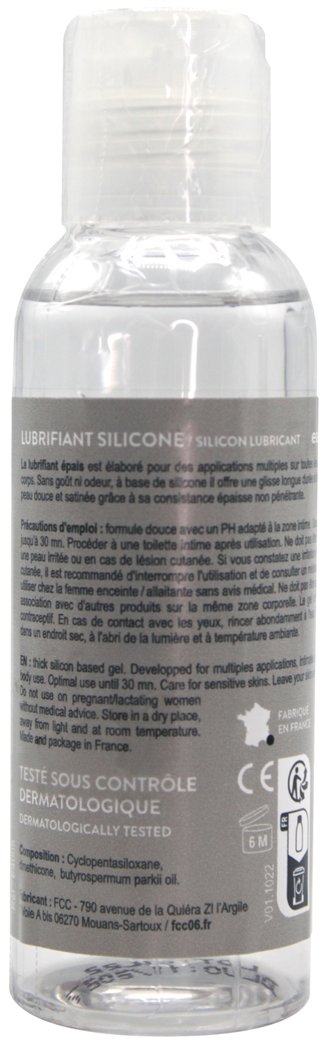 Composition : Cyclopentasiloxane, Dimethicone, Butyrospermum Parkii Oil (Huile de Karité) Précautions d’utilisation: Conserver dans un endroit sec et à l’abri de la lumière Garder hors de portée des enfants Éviter le contact avec les yeux, la peau abimée et les plaies. En cas d’irritations, arrêter l’usage et de consulter un médecin si cela persiste Tester sur une petite surface. En cas de rougeurs, allergies ou gênes, ne pas utiliser Ce lubrifiant n’est pas un contraceptif. Il ne contient pas de spermicide Ne pas avaler