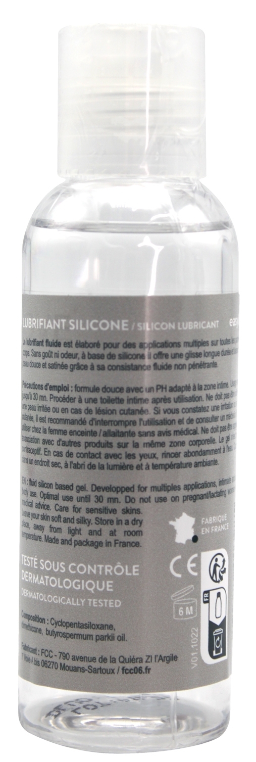 Composition : Cyclopentasiloxane, Dimethicone, Butyrospermum Parkii Oil (Huile de Karité) Précautions d’utilisation: Conserver dans un endroit sec et à l’abri de la lumière Garder hors de portée des enfants Éviter le contact avec les yeux, la peau abimée et les plaies. En cas d’irritations, arrêter l’usage et de consulter un médecin si cela persiste Tester sur une petite surface. En cas de rougeurs, allergies ou gênes, ne pas utiliser Ce lubrifiant n’est pas un contraceptif. Il ne contient pas de spermicide Ne pas avaler