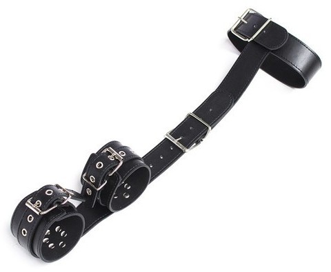 Accessoire BDSM permettant de maintenir votre partenaire dans une position de soumission.Les poignets se placent dans le dos et ils sont maintenus par des menottes reliées au cou par un collier