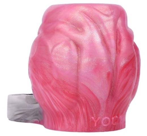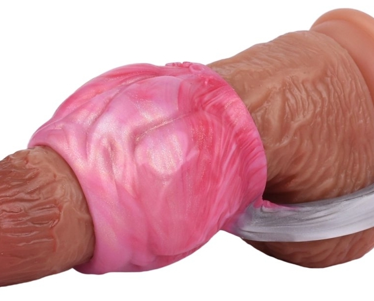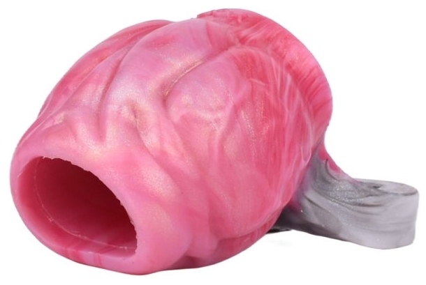 Manchon de pénis avec une forme originale et une couleur rose. Longueur de 6.5 cm. Largeur de 5.5 cm.Diamètre intérieur de 30 mm. En silicone