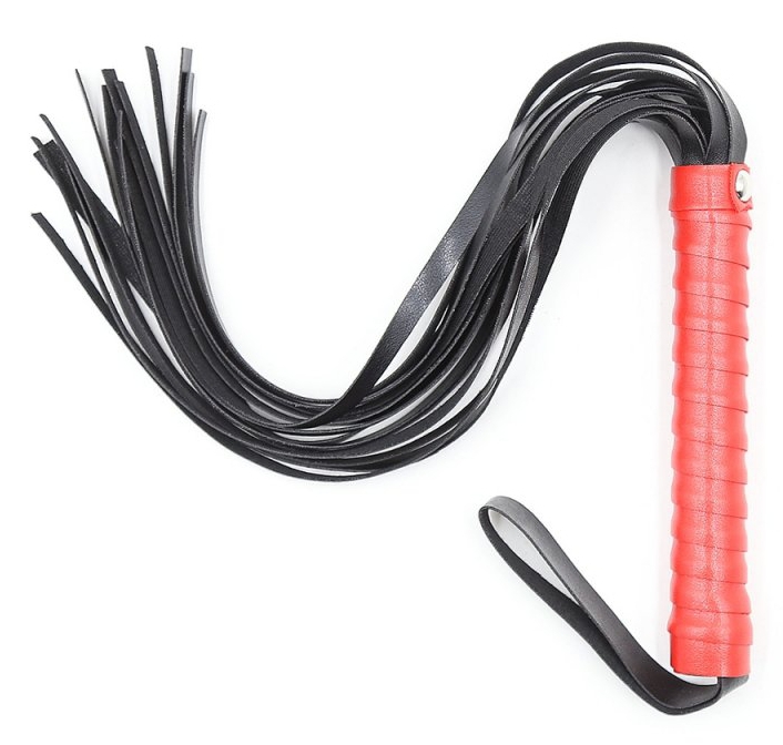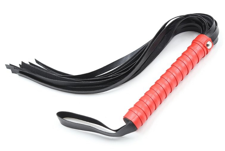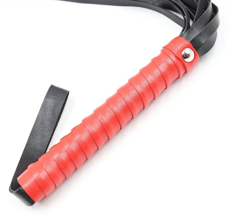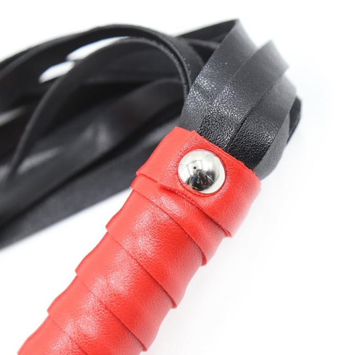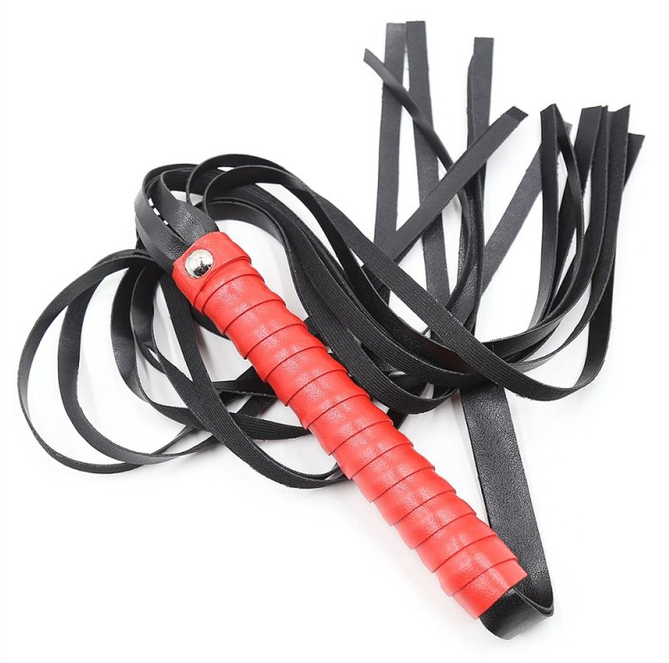 Le martinet Hellig est un accessoire conçu avec une longueur totale de 48cm.Les lanières noires sont fines et mesurent 33cm de longueur.Le manche est rouge. Fabriqué en simili (polyuréthane)