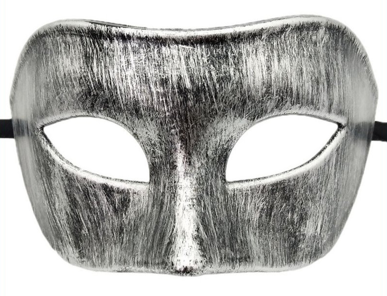 Masque argenté avec une belle forme en amande.Maintien avec un ruban satiné. En plastique ABS Dimensions : 18 x 9cm